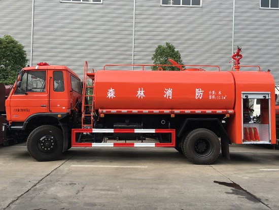 東風(fēng)四驅(qū)越野森林消防水罐車_東風(fēng)11.1噸四驅(qū)消防水車_國五四驅(qū)越野森林滅火水車_東風(fēng)4×4越野SCS5183GPSEQ型四驅(qū)綠化噴灑車簡介:采用東風(fēng)EQ2180GD5DJ型越野汽車底盤,東風(fēng)153寬體駕駛室,4×4驅(qū)動,康明斯ISB190 50國五發(fā)動機(jī),六檔變速箱,東風(fēng)商用車橋,前驅(qū)動橋3.8噸,后橋10噸,10.00R20輪胎,軸距4500mm,電動玻璃,方向助力,斷氣剎,ABS。罐體采用優(yōu)質(zhì)碳鋼Q235板材,板材厚度4mm,罐體容積11.1立方,安裝夾心取力器,后置泵箱,消防栓接口左右各一個,消防炮采用PS40消防水炮,流量40L/S/1.0MPa 水射程:≥50m,消防泵采用常壓消防泵型號:CB10/40車用消防泵,流量:40L/s,壓力:1.0MPa,駕駛室頂部安裝長條警燈帶喊話器,全車顏色橘紅,兩側(cè)噴涂白色森林消防字樣。