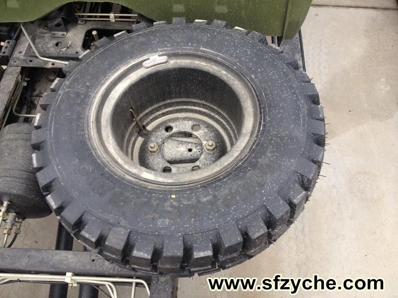 11R18型越野胎主要適用于軍用車輛行駛,可同時滿足軍用車輛在好路面上的高速行駛及在路況較差或無路情況下的越野行駛。該胎花紋采用無向塊狀設計,主行駛面花紋溝深度較淺且以縱向花紋溝為主,橫向花紋溝寬度較小,可提高輪胎的高速行駛性能、乘坐舒適性和操作穩(wěn)定性;胎肩部位的花紋以橫向花紋溝為主,花紋溝較寬較深,在越野時,對路面的抓著力強大,牽引力優(yōu)越、通過性能好,同時有利于花紋的散熱、排水和自潔性能。東風越野胎:m.clxia888.com
