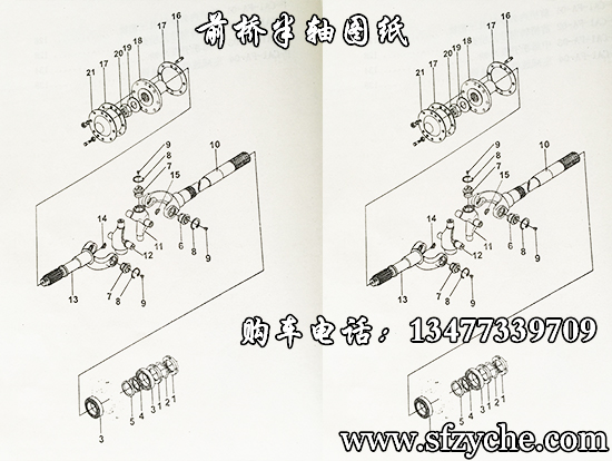 東風(fēng)EQ240尖頭六驅(qū)軍車前橋圖紙,EQ240、EQ2081E、EQ2061E、EQ2082E6D、EQ1093等車型均采用東風(fēng)德納2.8噸級(jí)前橋,前橋裝有三肖式等速萬向節(jié),主減速器速比6:35和6:37兩種,老款汽油車型都是6:37齒盆角齒;后期柴油車采用6:35齒盆角齒,輪胎螺絲6孔。下面詳細(xì)提供整根車橋細(xì)節(jié)圖紙: