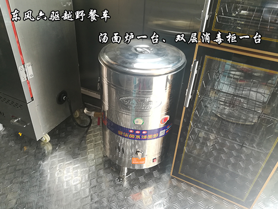 東風(fēng)六驅(qū)越野餐車車輛概述:采用東風(fēng)國五越野底盤改裝, 車廂材質(zhì)采用外冷軋鋼板,內(nèi)飾不銹鋼,中間保溫層,隱藏式上車踏步,頂部安全窗,兩個副食灶,一個蒸飯車,抽油煙機,平冷柜,水路,電路,油路等。