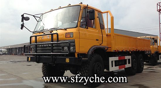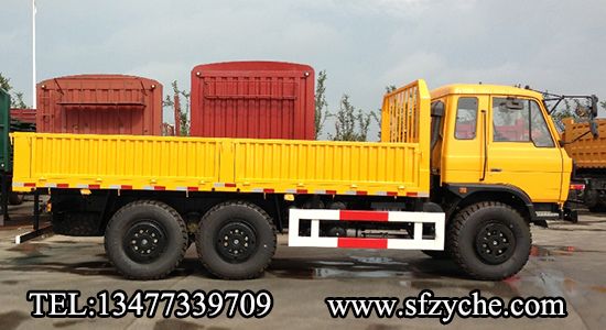 2、詳細(xì)配置:平頭一排半駕駛室,6*6驅(qū)動(dòng),康明斯190馬力,韶齒6檔變速箱,斷氣彈簧制動(dòng),貫通式中后驅(qū)動(dòng)橋,12.5R20越野胎,軸距 3500+1250mm,加厚雙層大梁,貨箱4850mm,帶軍用保險(xiǎn)杠。(新款仿天錦駕駛室加價(jià)1.5萬元)東風(fēng)越野卡車:m.clxia888.com