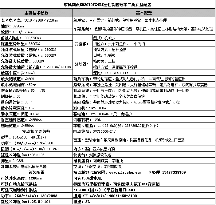 東風(fēng)EQ2070FFZ4D型高性能越野特種車是一款技術(shù)先進、性能卓越、多功能、全天候的特種越野車,也是中國上唯一在沙漠、山區(qū)等極其艱苦環(huán)境條件下顯示高技術(shù)、高性能和高可靠性的軍用和特殊民用汽車。該產(chǎn)品,無論是越高山峻嶺、穿林海雪原,還是闖茫茫沙漠、涉沼澤泥潭,無論是用作防彈運兵、戰(zhàn)地救護,還是用作森林消防和野外勘探,它都能以超一流的越野通過能力、高涉水性,可靠耐久性和優(yōu)異的上裝適用能力,令世人嘆為觀止,當(dāng)之無愧地成為挑戰(zhàn)越野極限的明星。如需了解更多EQ2070FZ4D型越野四驅(qū)汽車的詳細參數(shù)和配置請立即撥打銷售熱線:13477339709 李經(jīng)理 0722-7053060 業(yè)務(wù)QQ:530233927,微信號:13477339709 ,東風(fēng)越野卡車網(wǎng)址:m.clxia888.com