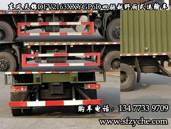 東風(fēng)天錦四驅(qū)越野廂式運(yùn)輸車(國(guó)六排放)可以上牌了!東風(fēng)牌DFV2163XXYGP6D型四驅(qū)越野廂式運(yùn)輸車:整車外形尺寸長(zhǎng)寬高7760,7960X2500,2550X3380,3580(mm)、廂體內(nèi)部尺寸長(zhǎng)寬高5400,5600X2400,2450X1900,2100(mm);廂體選裝瓦楞板設(shè)計(jì),底板4mm花紋板,后對(duì)開(kāi)門,側(cè)單開(kāi)門。適用于山區(qū)道路、戈壁灘道路的物資運(yùn)輸。
