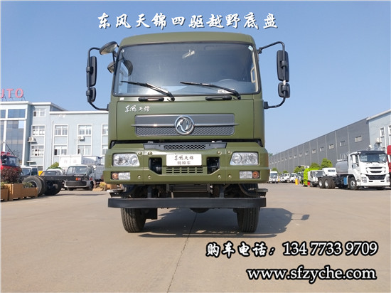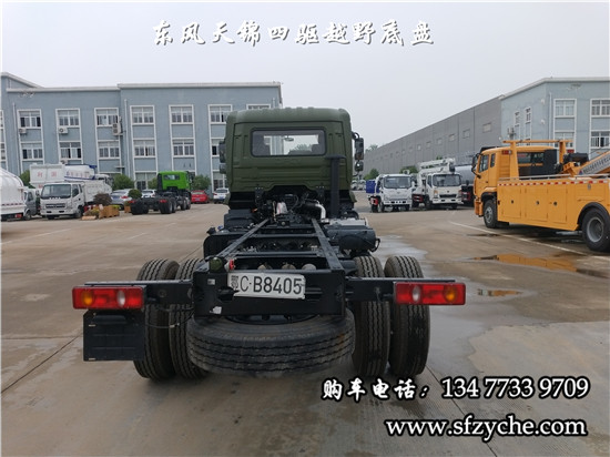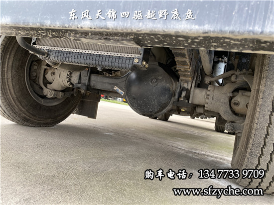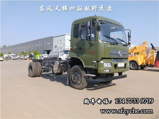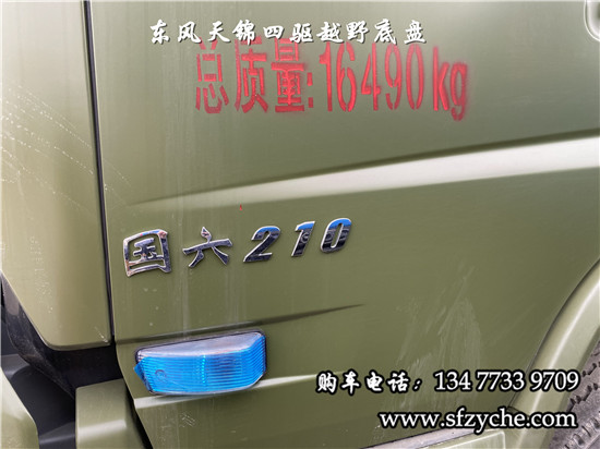 相關(guān)車型國六排放天錦(4×4)越野底盤,采用DFV2163GP6DJ型國六排放東風(fēng)天錦四驅(qū)越野底盤,東風(fēng)天錦D530一排半駕駛室,4×4驅(qū)動,康明斯B6.2NS6B210國六發(fā)動機(jī)210馬力,最大扭矩:850N.m/1100-1700rpm,排量6.2L、韶齒手動六檔變速箱,東風(fēng)德納車橋,前驅(qū)動橋4.5噸,后橋10噸,10.00R20輪胎,軸距4500mm/4700mm,大梁280mm,電動玻璃,方向助力,斷氣剎,ABS,大燈自動調(diào)節(jié),自動調(diào)整臂,選裝原廠空調(diào)。
