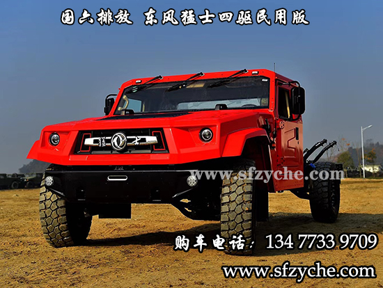 東風(fēng)猛士民用版EQ2063EYY6J型長頭單排四驅(qū)越野底盤是東風(fēng)越野車公司針對(duì)民用方面的首款軍轉(zhuǎn)民產(chǎn)品代表,其繼承東風(fēng)軍用猛士的正規(guī)血統(tǒng),品質(zhì)優(yōu)異,技術(shù)過硬。東風(fēng)猛士民用版EQ2063EYY6J采用東風(fēng)猛士M50型四驅(qū)底盤改造而成,采用東風(fēng)康明斯D4.0NS6B195型國六柴油發(fā)動(dòng)機(jī),195馬力 ,排量4L帶增壓,最大扭矩600/1100-2200(N.m/r/min);猛士5擋軍用手動(dòng)變速箱;分動(dòng)箱為四輪全時(shí)驅(qū)動(dòng)帶高低擋;軸距3800mm;整備質(zhì)量3540kg;核定載質(zhì)量2460kg;輪胎采用305/80R18MPT全鋼子午線輪胎,帶自動(dòng)中央充放氣系統(tǒng);整車總質(zhì)量6000kg,國六B排放全國可上黃牌,整車尺寸:5320*2310*1950mm;最小離地間隙388mm,最大垂直越障400mm,通過性強(qiáng),適應(yīng)高海拔極寒極熱地區(qū),全國暢行無阻,最高車速可達(dá)120km/h。