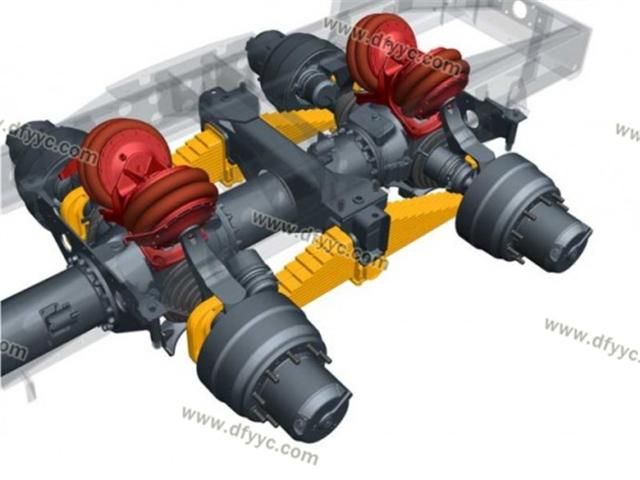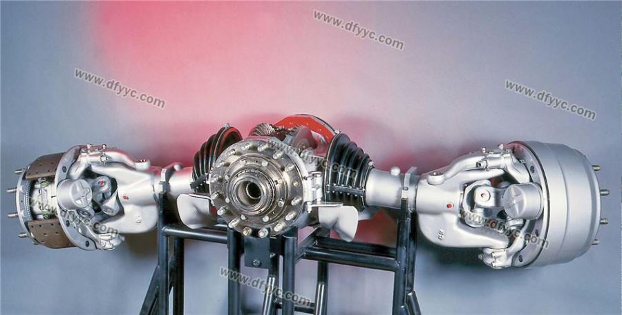 斷開(kāi)式車橋是太脫拉另一與眾不同之處,這幫助太脫拉這樣的重型卡車實(shí)現(xiàn)了全輪獨(dú)立懸架,允許車輪有較大的跳動(dòng)空間,大大提高了整車在極端路況下的通過(guò)能力,尤其是通過(guò)臺(tái)階、壕溝、扭曲路的能力。太脫拉在空載的時(shí)候車輪是呈內(nèi)八字的大外傾角姿態(tài),行駛的時(shí)候只有輪胎的外側(cè)胎肩接觸地面,而滿載的時(shí)候卻是呈負(fù)外傾的姿態(tài),這因?yàn)槠鋽嚅_(kāi)式車橋?qū)嶋H上是單橫擺臂的結(jié)構(gòu)所造成的,只要使用特制的輪胎,其輪胎磨損情況可以有效的改善。