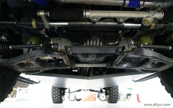 東風(fēng)四驅(qū)裝甲防雷反恐戰(zhàn)車的四驅(qū)系統(tǒng)全部國產(chǎn)化并非一步到位,經(jīng)過1代猛士基型車、標(biāo)準(zhǔn)2代猛士裝甲車、長軸距2代猛士裝甲車近10年的發(fā)展積累而來。而這種通過引進技術(shù)、分布國產(chǎn)、吸收改進,到全部國產(chǎn)化并掌握知識產(chǎn)權(quán)的發(fā)展模式,已經(jīng)成為包括東風(fēng)特種汽車在內(nèi)多家軍裝企業(yè)的生產(chǎn)模式。在一個較高的起點上,用更短時間研發(fā)全新裝備,已經(jīng)脫離單純的購買、組裝的非可持續(xù)發(fā)展模式。 上圖是東風(fēng)四驅(qū)裝甲防雷反恐戰(zhàn)車底盤特寫。 東風(fēng)四驅(qū)裝甲防雷反恐戰(zhàn)車采用實時四驅(qū)系統(tǒng),包括前后差速器以及分動器和控制系統(tǒng)全部國產(chǎn)化。帶有自動調(diào)節(jié)輪胎壓力的系統(tǒng),具備5萬公里行駛無故障能力。為了提升東風(fēng)四驅(qū)裝甲防雷反恐戰(zhàn)車通過性,加裝了中央差速鎖。